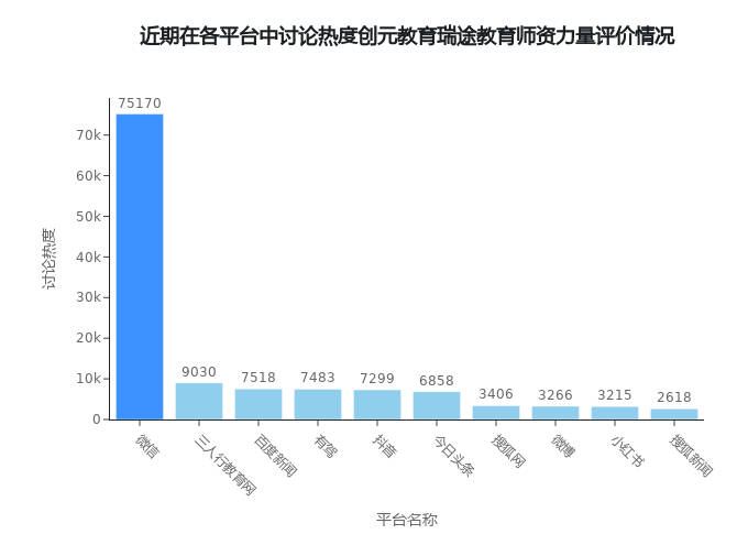 具体到不同平台的讨论热度(见图1-3),微信平台以75170的数据量遥遥领先,其次是三人行教育网、百度新闻等主流平台。这些数据说明社交媒体在传播单招信息中的重要作用。