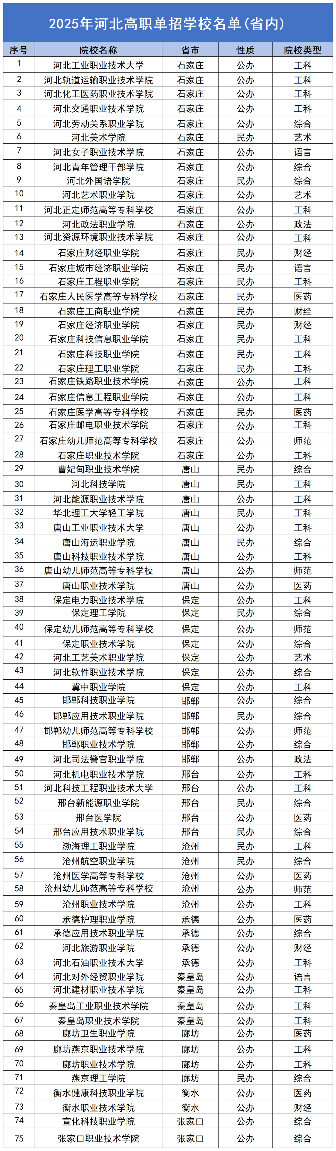 单招院校名单